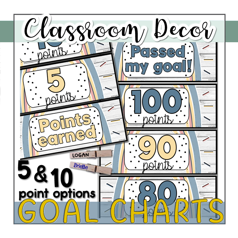 You'll be feeling calm boho vibes with this goal clip chart! Students can track their Accelerated Reader® progress or any other program where points are tracked. Simply write each student's name on a clothespin or clip and move it as they progress.